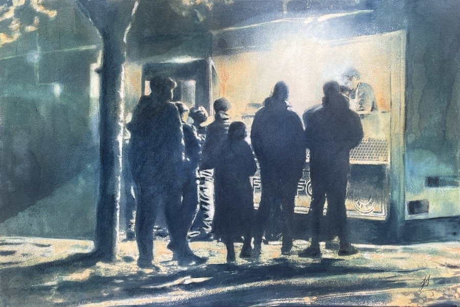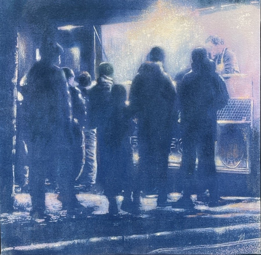 Jude’s work captures the quiet intimacy of human connection and the subtle beauty of everyday moments. Blending abstraction, figuration, and rich textures, she explores the emotional landscape of people as they move through their environments—often absorbed in their own inner worlds. Her art shines a light on overlooked places and unnoticed individuals, giving voice and visibility to stories hidden in plain sight.