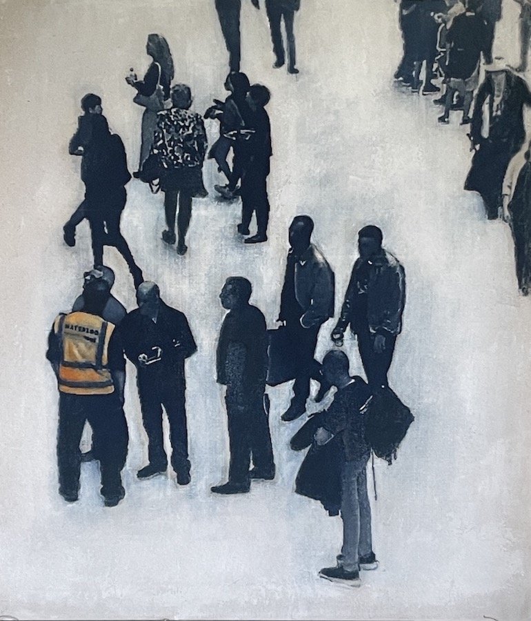 London Commute mixed media stretched canvas framed 80cmx80cm £1,250