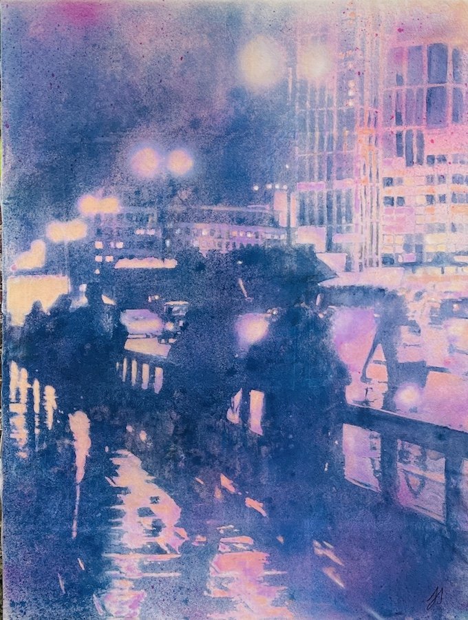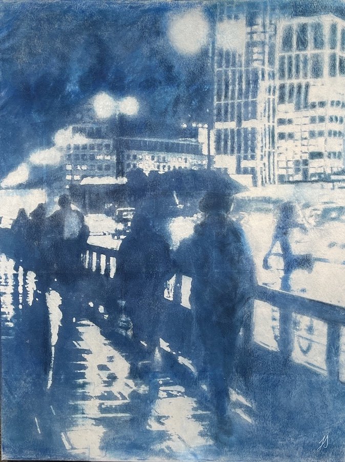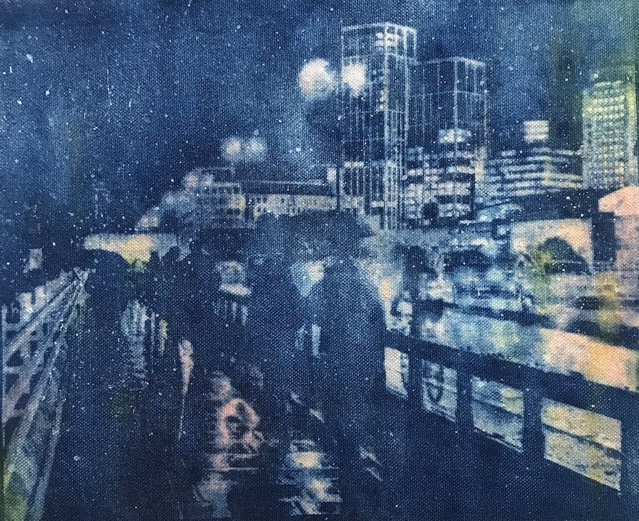 Regent Street ink, oil cyanotype on canvas 20cmx25cm £160